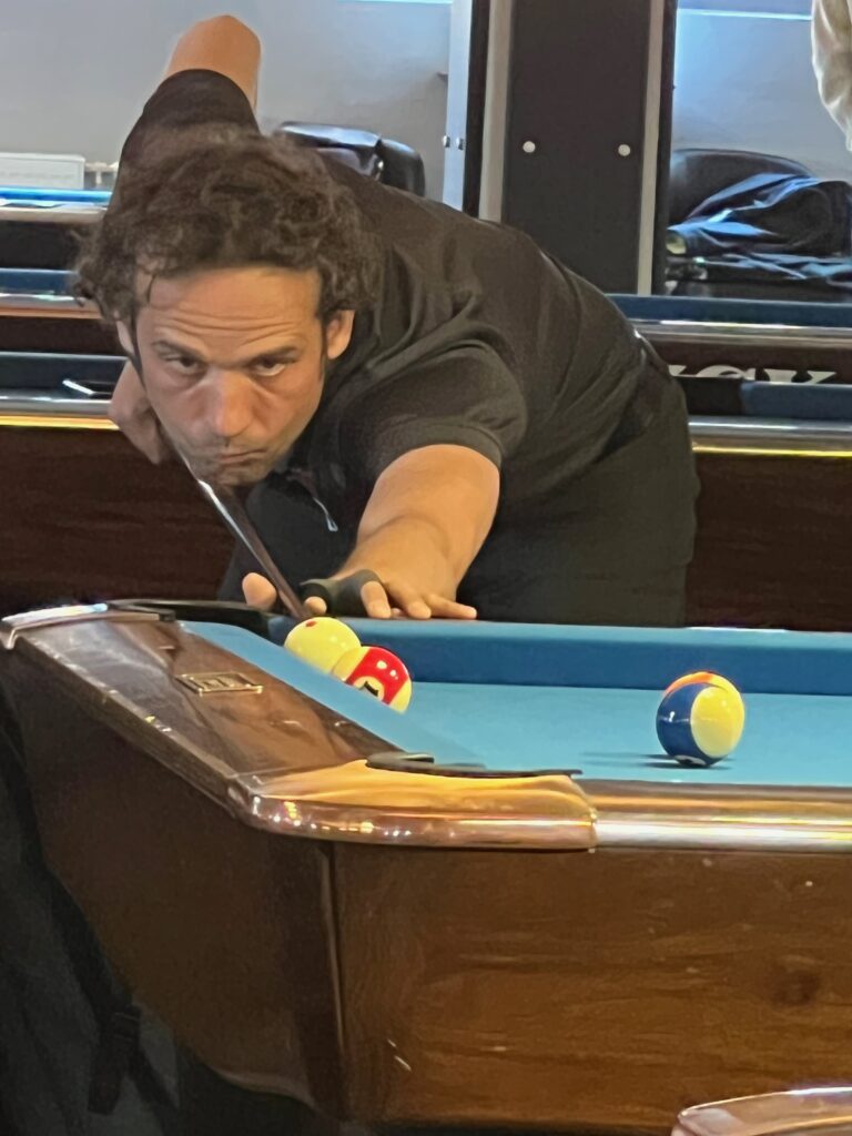 Denver konnte mit 100 – 89 gegen Mike ins Finale einziehen. An seiner ersten Landesmeisterschaft spielte der junge Serhii ein sehr taktisches Spiel und konnte nachdem Dominik seine letzte Aufnahme mit 3 Fouls beendete und somit eine kurze Runde in die Regelkunde bescherte kam es zum Showdown in der letzten Aufnahme. Dominik machte einen perfekten und regelkonformen Anstoss und Serhii musste einen Ball aus dem Dreieck riskieren. Leider pendelte er in der Tasche und somit scheiterte es ganz knapp an einem reinen Pooldogs Finale.